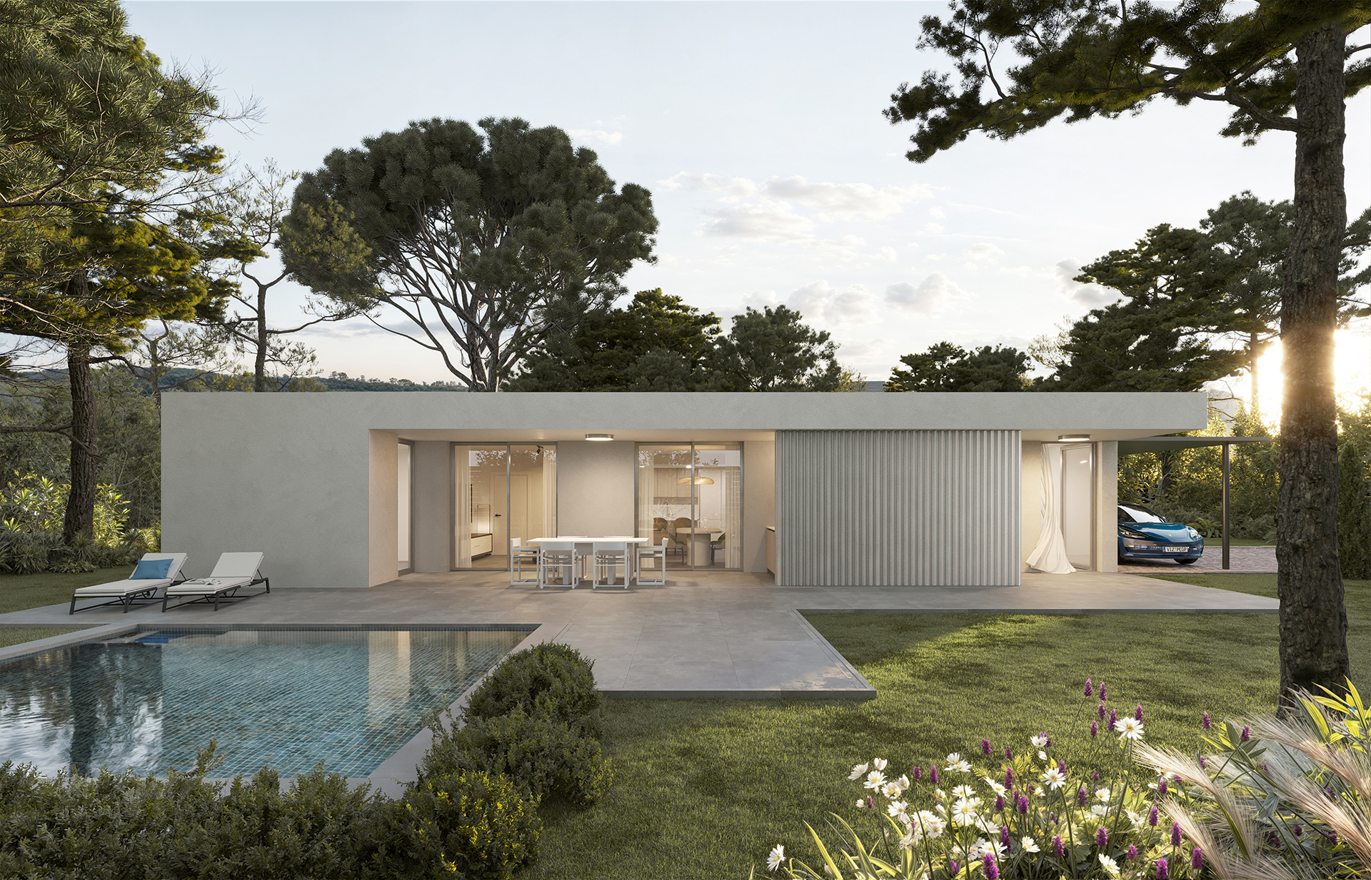 Un estilo vanguardista, moderno, la casa se cubre de una piel metálica, semitransparente y funcional.